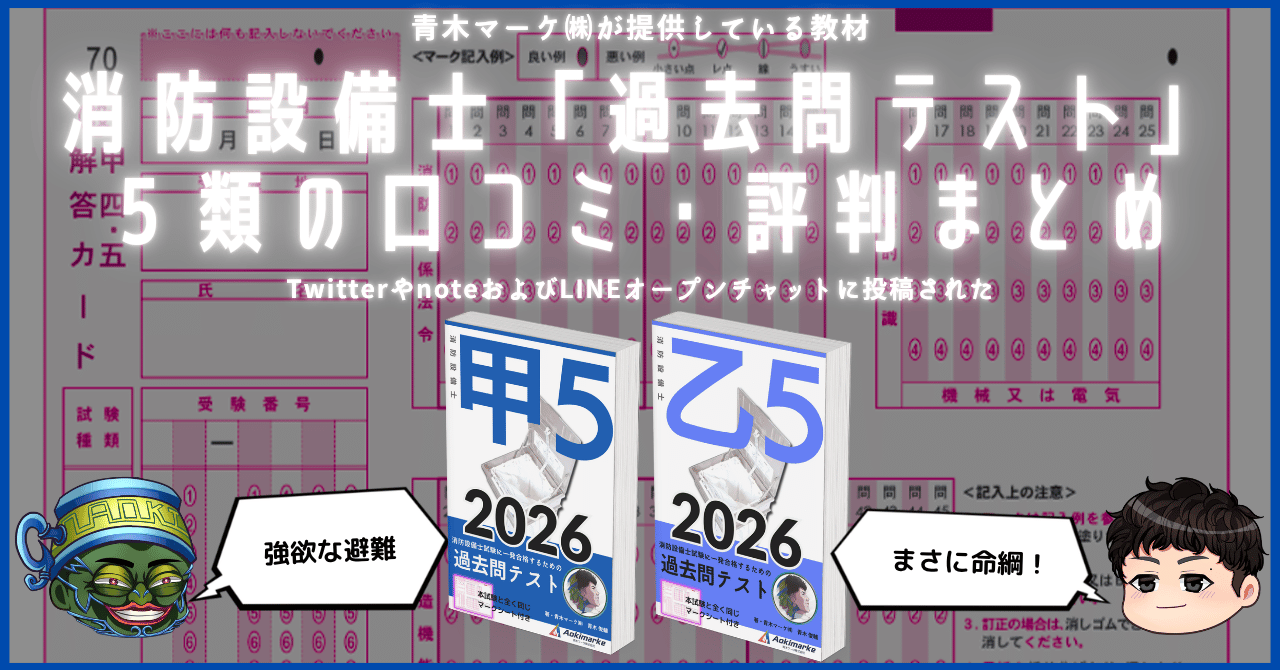 青木マーケ㈱【公式】noteにて販売している消防設備士5類「過去問テスト」甲種【※PDF付き】および消防設備士5類「過去問テスト」乙種【※PDF付き】をご利用いただいた方々から頂いた口コミ・評判および合格報告の数々をまとめて紹介します!