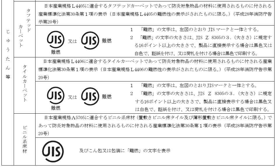 消防法 第8条の3〔防炎対象物品の防炎性能〕第3~4項にて ❝指定表示❞ は、じゅうたん等や合板に付されるものになります。